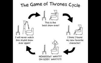 Il ciclo de Il trono di spade: è il migliore show di sempre -> Penso di aver trovato il mio nuovo personaggio preferito -> noooo!Perchè?!?!?! -> Non guarderò mai più questo stupido show! -> è il migliore show di sempre