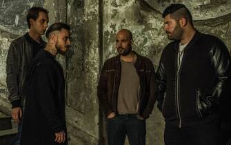 Enzo Sangue Blu (Arturo Muselli) discute con Genny (Salvatore Esposito). Assistono alla scena Valerio (Loris De Luna) e Ciro (Marco D’Amore). Gomorra 3: Arturo Muselli racconta Enzo