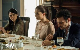 Patrizia (Cristiana Dell’Anna) con Gerlando (Gianni Parisi) e Mickey Levante (Luciano Giugliano). Gomorra - La serie è una produzione Sky con Cattleya e Fandango, in collaborazione con Beta Film.