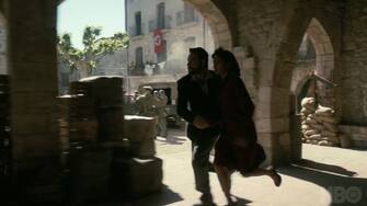 Poi, però, la vediamo con le mani alzate di fronte a qualcuno e con due uomini armati alle spalle.