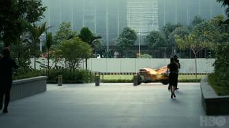 Nelle scene successive vediamo Dolores cadere e atterrare su un'auto insieme a qualcuno...