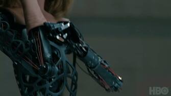 "...un posto che ci è sempre stato vietato vedere: il vostro mondo..." termina Dolores. Intanto la vediamo indossare una sorta di "guanto" di pelle sintetica sul suo esoscheletro metallico.