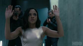 Ed ecco anche Charlotte Hale (Tessa Thompson), o meglio, la versione sintetica di Hale ricreata da Dolores. Come ben ricorderanno i fan della serie, la nostra eroina ribelle nel finale della seconda stagione è riuscita a lasciare l'isola proprio "nascondendosi in bella vista" nel corpo della sua nemica...