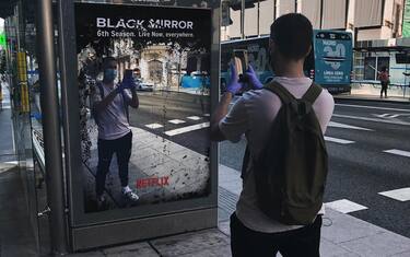 È davvero difficile pensare a una nuova stagione di “Black Mirror” in questa situazione, considerando quanto la realtà si sia avvicinata tremendamente alle trame delineate in passato. Per questo motivo Netflix ha deciso di lanciare una particolare campagna pubblicitaria. Presso alcune fermate dell’autobus di Madrid è infatti possibile vedere un cartellone-specchio, con scritto: “Black Mirror. Sesta stagione, in diretta, ora, ovunque”. Una trovata che ha rapidamente fatto il giro del web. Svariati i commenti su Twitter, dove le foto dalla Spagna sono state particolarmente diffuse. C’è chi si chiede perché questa stagione duri così tanto e altri che finalmente hanno capito il senso di questo folle 2020.