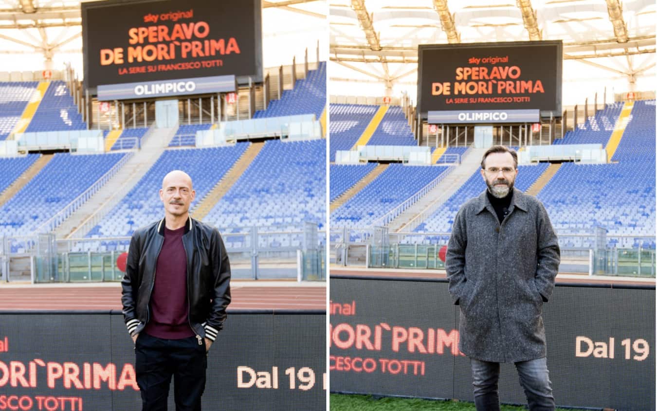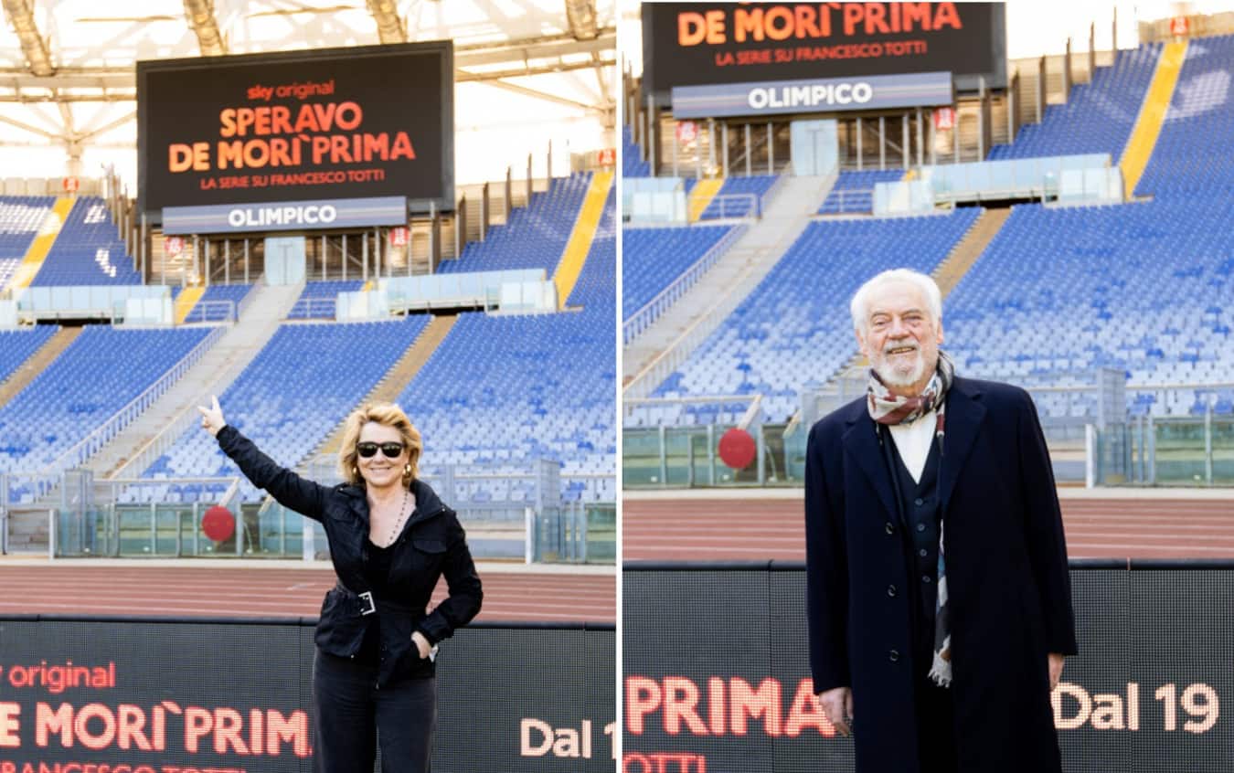 Dopo essere stato stadio di calcio giovedì sera e venerdì pomeriggio e stadio di rugby sabato pomeriggio per Italia-Galles del Sei Nazioni, l'Olimpico cambia ancora scenografia e si trasforma nell'enorme set della conferenza stampa di presentazione di Speravo de morì prima, la serie tv Sky in sei episodi tratta dall'autobiografia di Francesco Totti (scritta insieme a Paolo Condò).