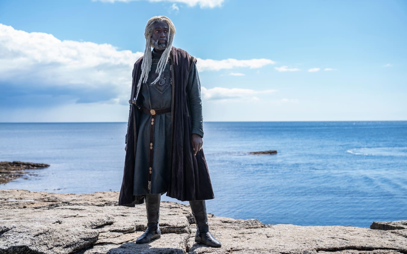 Steve Toussaint è Lord Corlys Velaryon, detto “The Sea Snake”: Lord di Casa Velaryon, una stirpe di Valyria antica almeno quanto la casata Targaryen. Come “The Sea Snake,” (il serpente di mare) il più famoso avventuriero mai andato per mari nella storia di Westeros, Lord Corlys è più ricco dei Lannister e rivendica di possedere la flotta più grande al mondo.