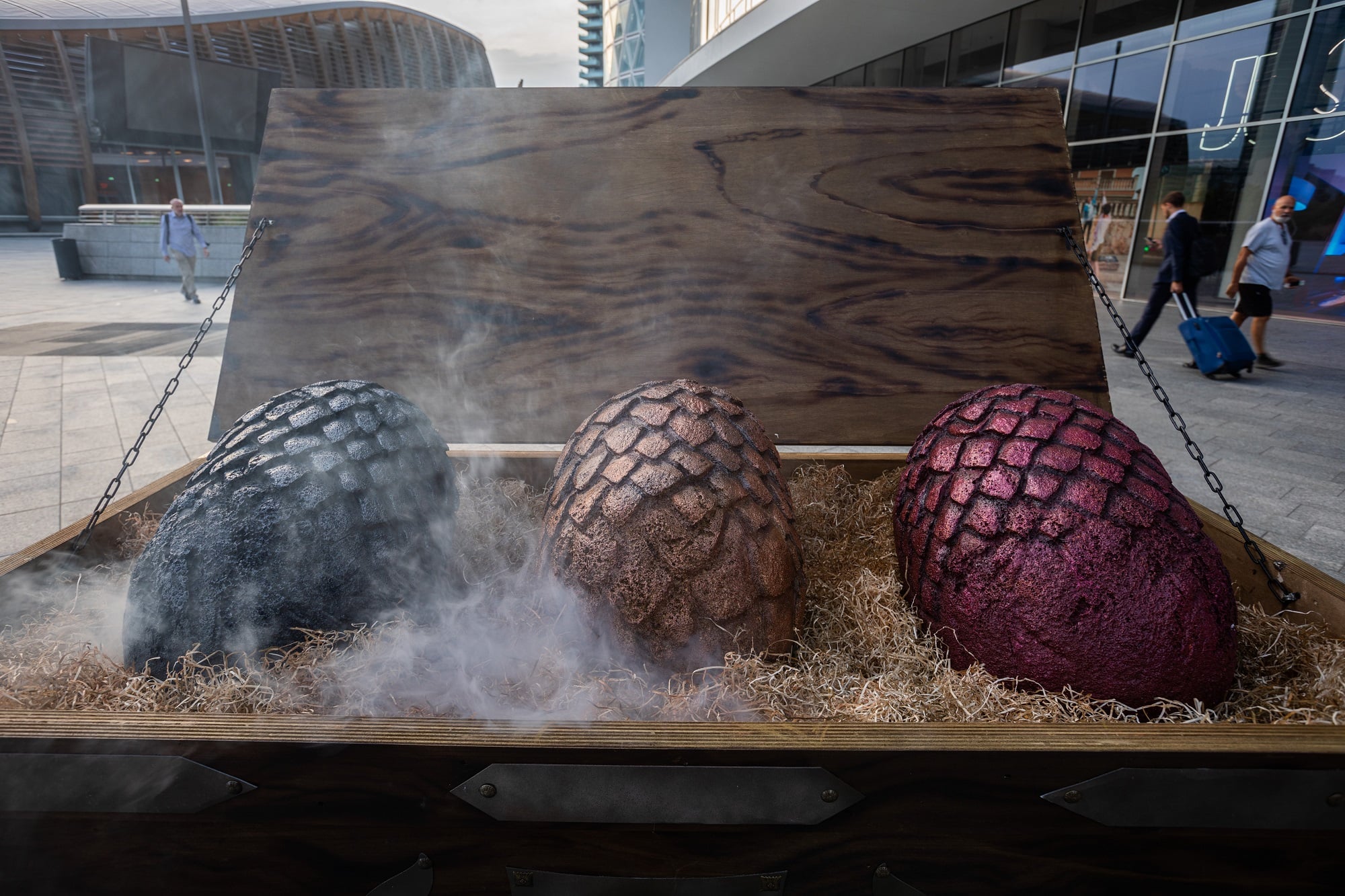 Dalle prime luci dell’alba di ieri, chi ha attraversato piazza Gae Aulenti si è trovato di fronte ad un forziere nel quale, immerse nel fumo, sono comparse delle bollenti uova di drago.