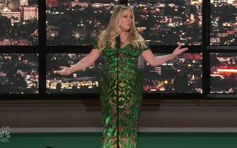 La quota di abiti Dolce & Gabbana si arricchisce con quello di Quinta Brunson, una creazione custom made con parte superiore riccamente decorata e con gonna lunga con spacco altissimo. Nel look ci sono molti gioielli e molti anelli, tutti del brand Jared Lehr. Voto 7