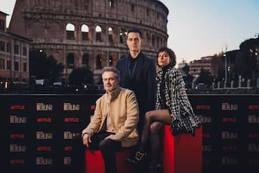 Berlino, lo spin-off de La casa di carta debutterà il 29 dicembre su Netflix, visibile anche su Sky Glass, Sky Q e tramite app su Now Smart Stick. Per il lancio della serie, gli attori del cast sono approdati a Roma, dove hanno partecipato a un photocall davanti al Colosseo. Da sinistra, nella foto, Tristán Ulloa, Pedro Alonso e Michelle Jenner