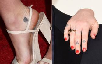Anche Miley Cyrus è piena di tatuaggini sparsi in giro per il corpo, tra cui un teschietto messicano fatto con il fidanzato Liam sul piede e una serie di occhi sulle dita