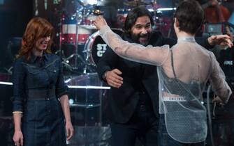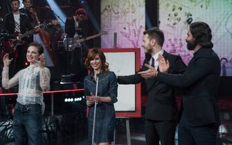 Cattelan con gli ospiti della serata: Bebe Vio, Francesca Baraghini e Lele Adani