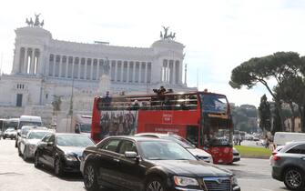 Il bus di Edicola Fiore davanti al Monumento al Milite Ignoto