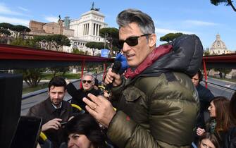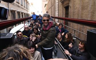 Fiorello parla ai "passeggeri" del bus