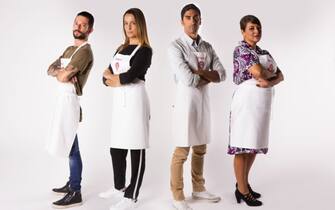 I quattro finalisti di Celebrity MasterChef Italia: Marisa Passera, Nesli, Roberta Capua e Filippo Magnini