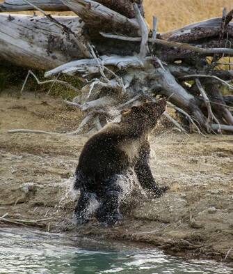 Un cuccioli di orso grizzly appena uscito dal bagnetto