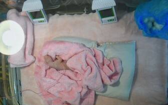 Un cucciolo di Panda, minuscolo rispetto alla sua mamma!