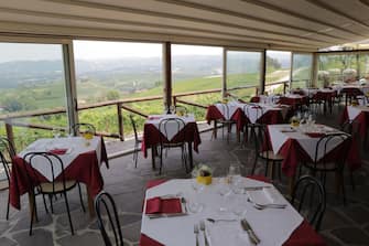 La sala del ristorante "Eremo della Gasprina" a La Morra. Il ristorante è orgoglioso della terrazza esterna coperta e della vista che possiede la sua location, una caratteristica che la rende un posto rilassante. L’Eremo della Gasprina mette a disposizione dei clienti anche 6 camere nelle quali è possibile soggiornare, ma le stanze non hanno né radio né televisione proprio per permettere a chi soggiorna di godere delle bellezze del territorio.