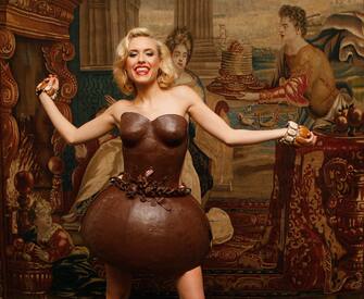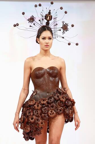 La modella tedesca Alena Gerber indossa una mise molto speciale, un vestito tutto a base di cioccolato, continua a sfogliare la gallery e scopri le altre estrose creazioni