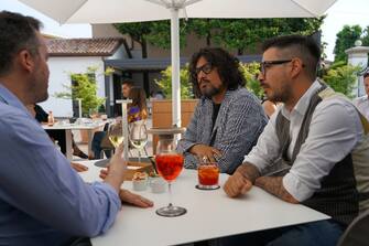 l’aperitivo viene servito nel terrazzo esterno vicino al bar – il bar è in una struttura separata dal ristorante; era la vecchia dependance della villa liberty. Oltre ai tavolini esterni, l’aperitivo si può gustare anche sul bancone del bar dove si trovano 9 sgabelli.