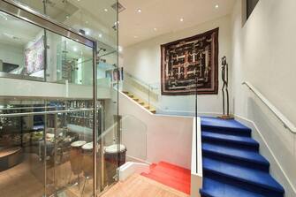Le scale multicolor accanto all'ascensore di vetro, fortemente voluta dall'attrice