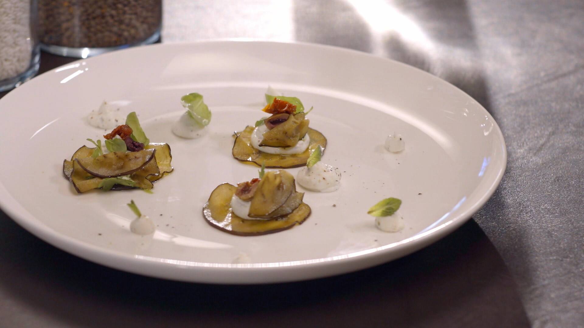 La ricetta del giorno, proposta da Alessandro Borghese, è il raviolo aperto di melanzane pepe creola.