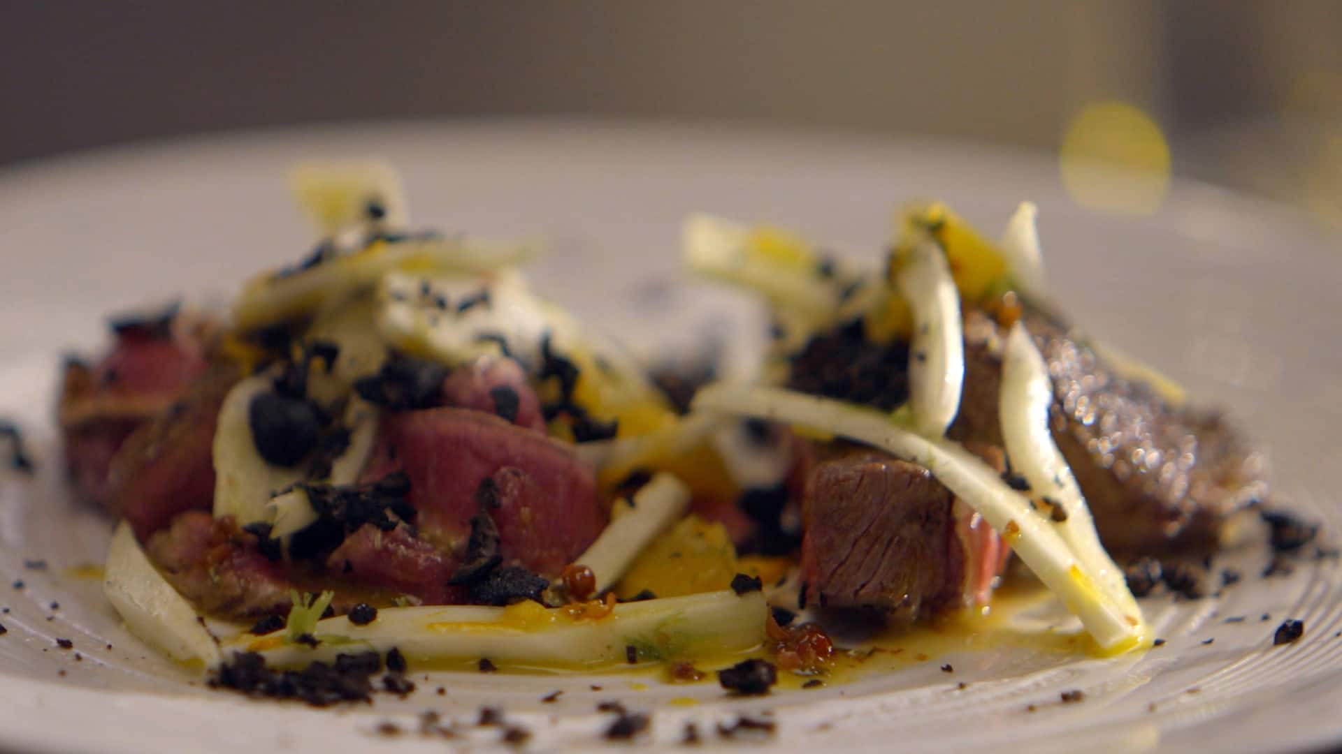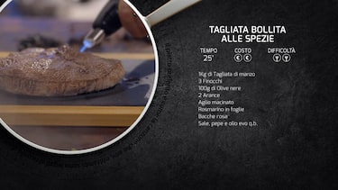 Scopri la ricetta della tagliata bollita alle spezie proposta da Cristiano Tomei.
