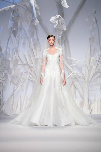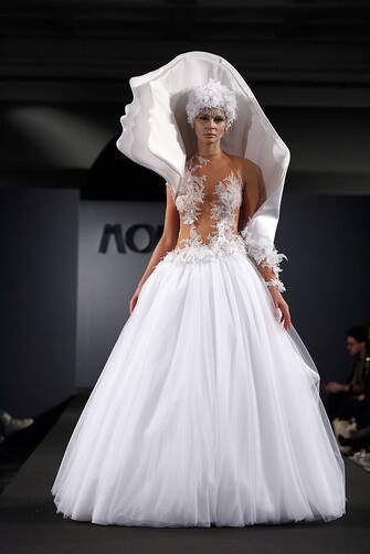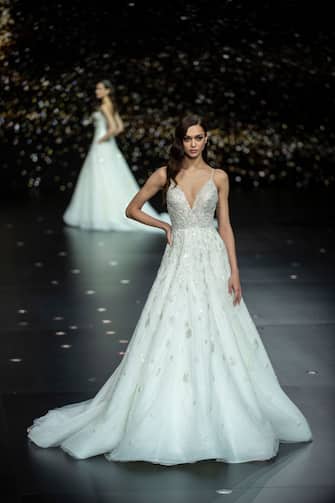 In attesa della seconda puntata del programma "Antonio Riva - Una Sposa Da Sogno", in onda su Sky Uno (canale 108) e su digitale terrestre al canale 455, tutte le domeniche alle 21.15, sfoglia la fotogallery e scopri i look da sposa in passerella. Dai modelli classici a sirena con strascico a quelli più arditi con spacchi mozzafiato. A ognuna il suo stile.