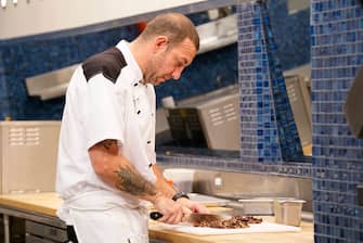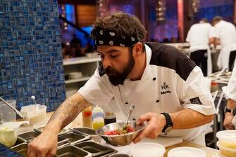 Lo chef osserva i concorrenti durante la sfida