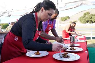 I concorrenti della squadra rossa impiattano le loro creazioni.