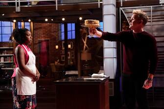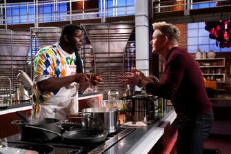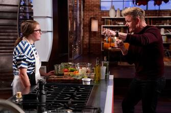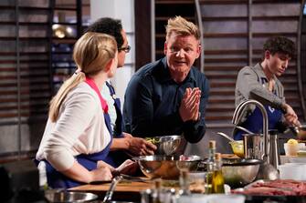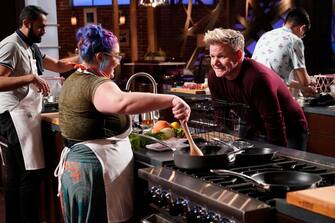 Gordon Ramsay si avvicina a Chelsea per controllare come sta cucinando.