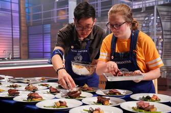 Il capitano della squadra blu SJ e Samantha concentratissimi mentre impiattano.