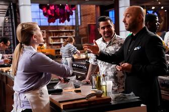 Joe Bastianich e Aaron Sanchez danno i loro consigli a Gerron.