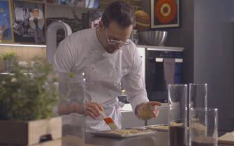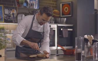 Lo chef Renato Bosco nella cucina di Alessandro Borghese Kitchen Sound.