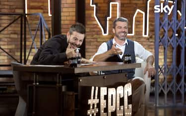 Alessandro Cattelan e Luca Argentero alla scrivania di EPCC Live in occasione dell'undicesima puntata dello show.