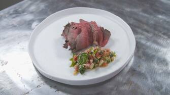 La ricetta del rostbeef, pesto trapanese e zucchine