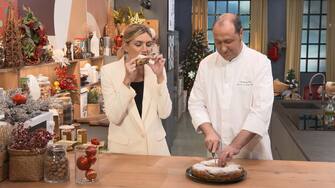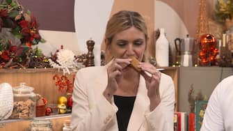 Chiara Maci durante l'assaggio della Dolce colazione di Natale del maestro Andrea Tortora