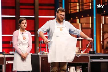 Durante l’assaggio Bruno Barbieri muove una critica a Leonardo, “il suo non è uno spaghetto alla chitarra ma un tagliolino”. In questa prova, il giovane aspirante chef non sembra aver mostrato tutto il suo talento. Nella foto, Scabin e Barbieri si confrontano