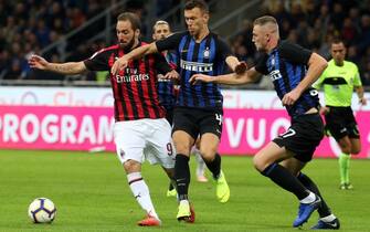 Sul fronte rossonero, meno dolorosa è stata la cessione di Higuain al Chelsea. L'ex Juve al Milan (qui in azione nel derby d'andata dell'ottobre 2018) non ha convinto e i tifosi rossoneri non hanno faticato a consolarsi -