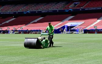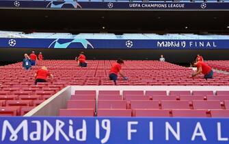 Gli ultimi ritocchi al Wanda Metropolitano, lo stadio dell’Atletico Madrid che ospita la finale
