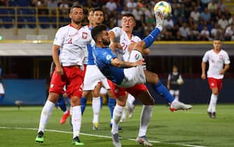 Patrik Cutrone è stato un altro dei protagonisti della partita contro la Polonia: qui mentre tenta una rovesciata braccato da Karol Fila
