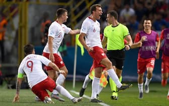 L'esultanza dei polacchi dopo il gol dell'1 a 0