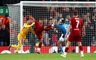 La rete dei campioni d'Europa è nell'aria: corner di Milner, incornata di Lovren a sovrastare Mertens ed è 1-1