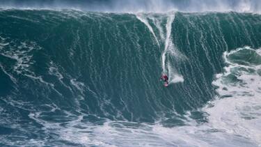 Surf, l'incredibile (e pericolosa) acrobazia di Lenny a Nazarè. VIDEO