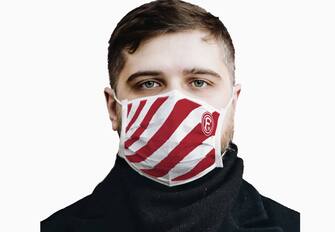 Anche a Dusseldorf, i tifosi del Fortuna, che gioca in Bundesliga, possono idossare la mascherina con il bianco e rosso della propria squadra del cuore (Fonte: store ufficilale Fortuna Dusseldorf)