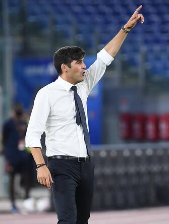 Paulo Fonseca, allenatore della Roma, dà indicazioni ai suoi dopo il vantaggio della Sampdoria