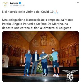 I giocatori della Lazio rendono omaggio alle vittime del coronavirus a Bergamo (© Twitter SS. Lazio)