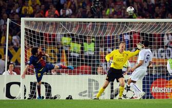 Ottimo anche il feeling con la Champions League di Messi: in 141 presenze in questa competizione ha realizzato ben 114 gol. Nella foto il colpo di testa che vale il 2 a 0 definitivo nella finale di Roma contro il Manchester United del 27 maggio 2009