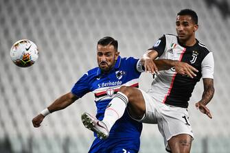 Quagliarella affrontato da Danilo. La Sampdoria si difende bene e si rende pericolosa con le ripartenze