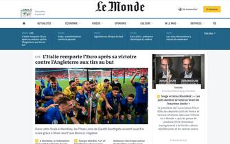 La notizia della vittoria dell'Italia sul sito del quotidiano francese Le Monde