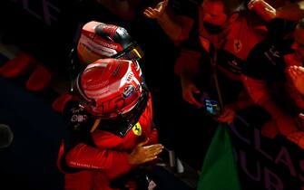 Ed è grande la festa nella scuderia Ferrari dove i due piloti si sono abbracciati per festeggiare lo straordinario risultato